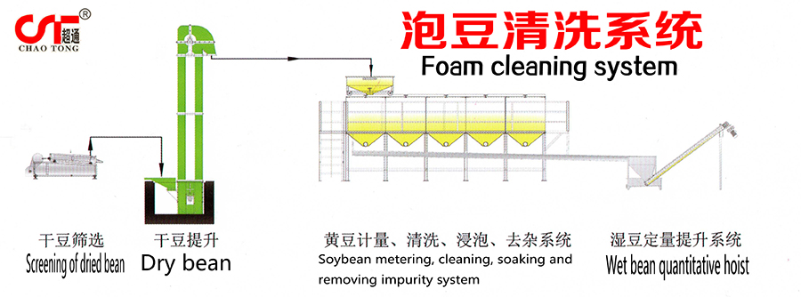 根據(jù)后續(xù)產(chǎn)品和產(chǎn)量選擇不同大小和數(shù)量的泡豆桶,目前可增加黃豆滅酶裝置或全自動(dòng)浸泡、清洗、翻豆控制系統(tǒng)