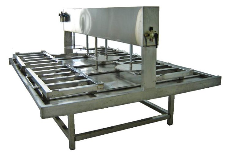 設(shè)備簡介:用于豆腐生產(chǎn)線。利用氣泵供給壓縮空氣推動圓形氣缸中的柱塞壓制豆腐。