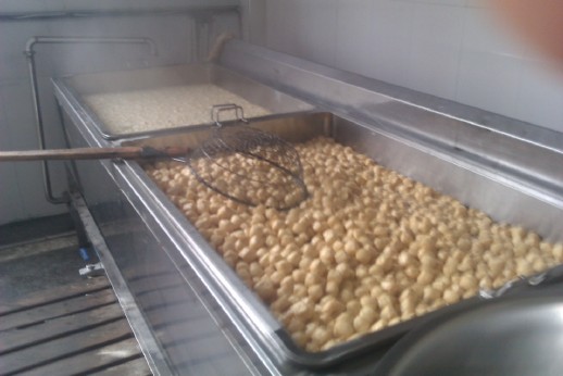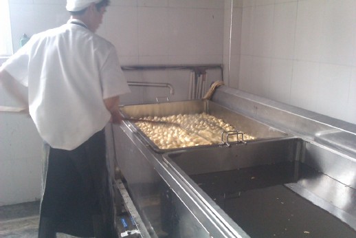 該機是在傳統(tǒng)電炸鍋基礎上添加油水分離機構和安裝了蒸汽加